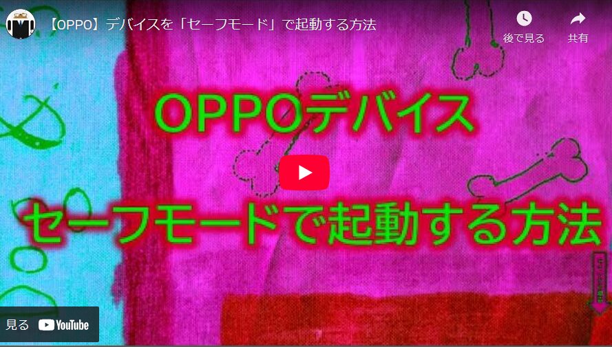 電源を一旦オフにしてから、電源ボタンを5秒以上長押しして、「OPPO」のロゴが画面に表示されたら、音量(下)ボタンを長しすると、端末をセーフモードで起動できます。