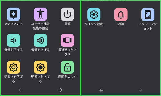 片手操作が難しい場合や、物理ボタンの使用が困難な場合に、画面上のタッチ操作で主要な機能を呼び出せるようになります。