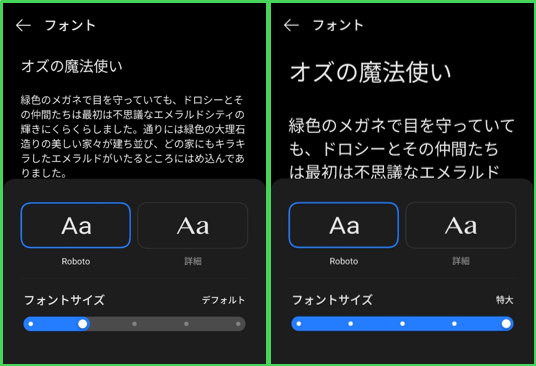 フォントの大きさを5段階で調整できます。