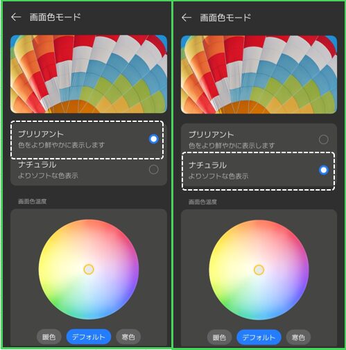 1)画面色モード