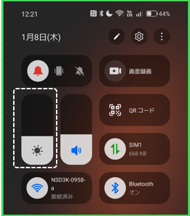 明るさの調整スライダーをドラッグして画面の明るさの調整ができます。