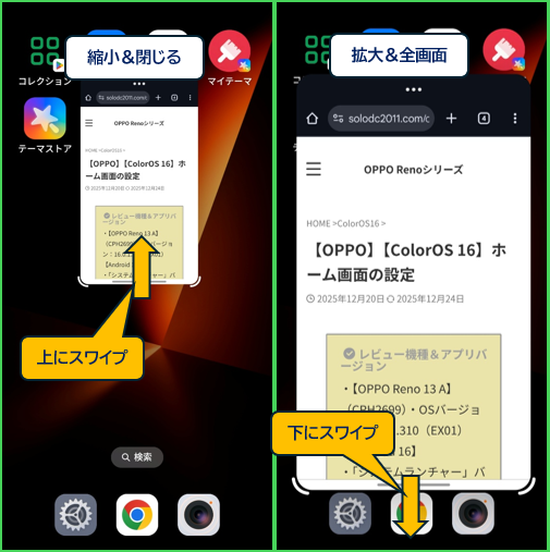 | ミニウィンドウを閉じる | ・ミニウィンドウ上を画面上部外までスワイプする |