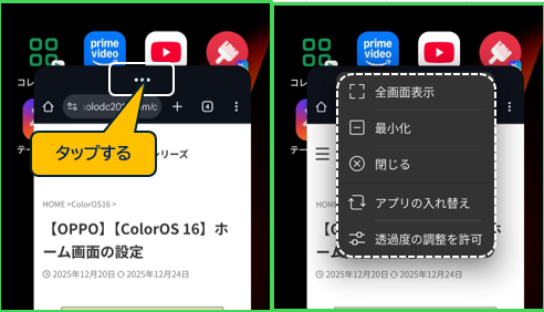 1.アプリをフローティングウィンドウで開く方法