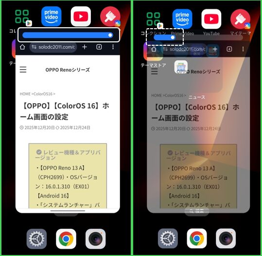 アプリの入れ替え ※ウィンドウを制御=「ジェスチャー」のみ