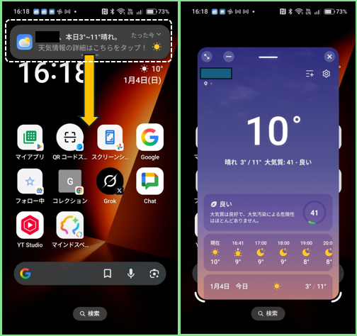 6)通知パネルを長押しする