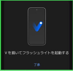 Vの文字を描いてフラッシュライトをオンまたはオフにする