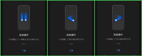 ・画面上を2本指で下方向にスワイプ:再生停止/開始ができます。