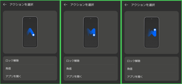 ・アプリ起動 ※指定したアプリを起動できます。ロック解除が必要です。