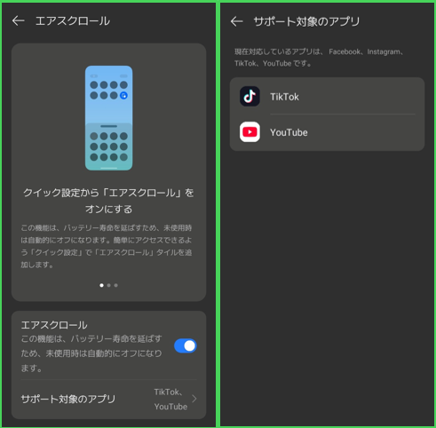 2)エアスクロール ※ColorOS 14:ページを上下にスクロール