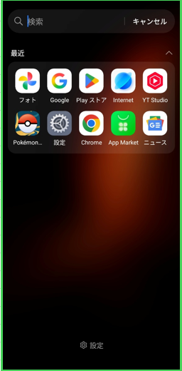 「ドロワー画面」のグローバル検索は利用しなくてもいいかなと思います。【ホーム画面設定】>【ホーム画面」で「ドロワー」を選択>「グローバル検索」は無効にします。
