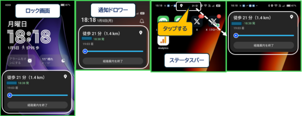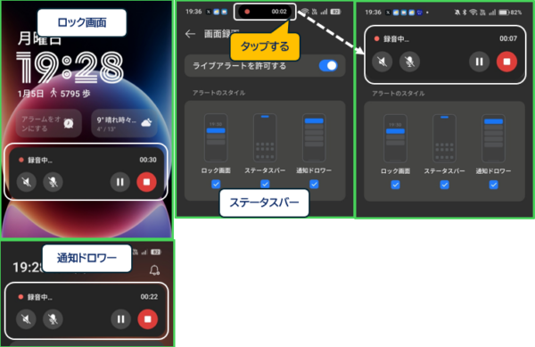 「ロック画面」「通知ドロワー」でも同様です。