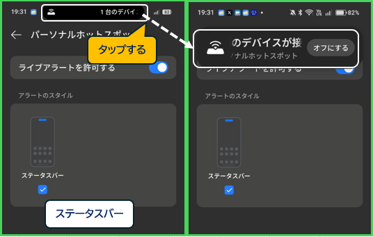 有効にすると、ステータスバーに表示している「カプセル」が、一定時間経つと最小化(バブル表示)されます。