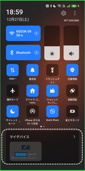 タップすると、クイック設定の下段に「マイデバイス」のタイルを表示できます。
