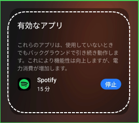 ⑧3ドットボタン>「有効なアプリ」