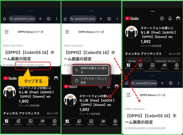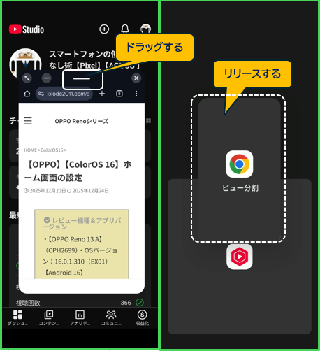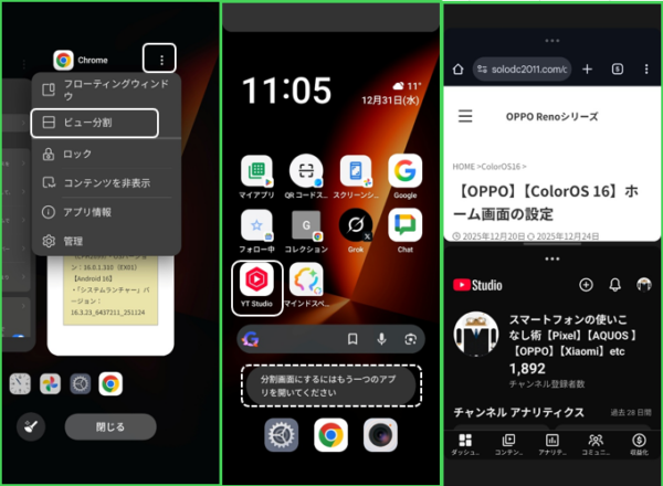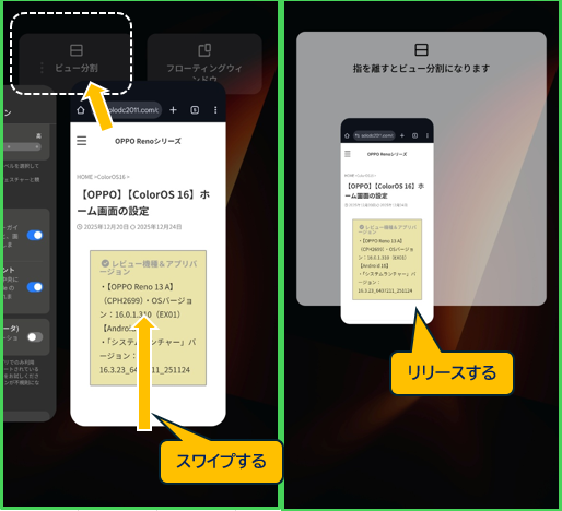 【OPPO】【ColorOS 16】分割画面(ビュー分割)にする方法と使い方