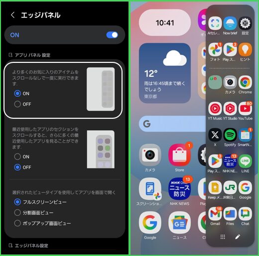 ※横画面にすると残念ながら「エッジパネル」は機能しません。