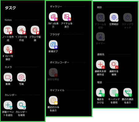 エッジパネルをサブランチャーとして利用する場合に「アプリ」パネルの次に重要なのが「タスク」パネルになります。