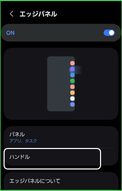 【エッジパネル】画面で、「ハンドル」をタップすると、次のカスタマイズができます。