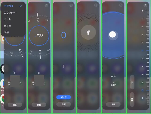 ・(コンパス)・カウンター・ライト・水平器・定規が利用できます。
