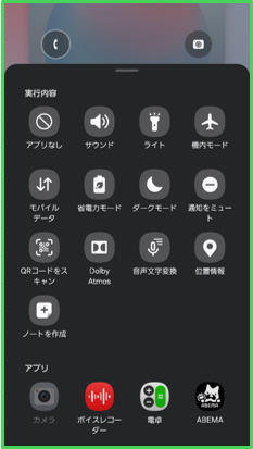 ※:「クイックパネル」の最初の6個からも操作できます。
