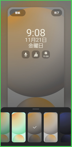 ・ロック画面上を長押ししてからロック解除すると、ロック画面のスタイルをカスタマイズできる編集画面になります。