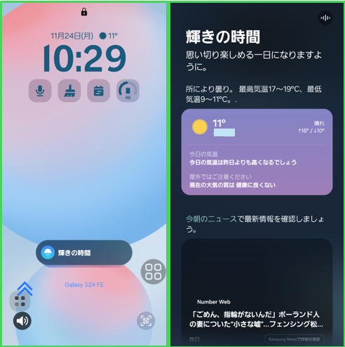 「ロック画面」の場合は、ロック解除することなく、リアルタイム情報を確認し、操作することが可能になります。
