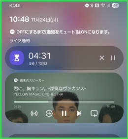 「ライブ通知」は、「通知パネル」の一番上に表示されます。「Now Bar」をタップしたときと同様に、ここからいろいろな操作が可能です。